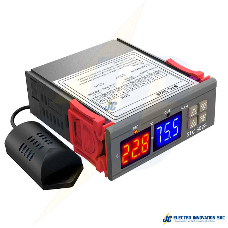 *CODIGO: STC-3028 *VOLTAJE DE ENTRADA: 110VAC/220VAC *MEDICIÓN DE TEMPERATURA: -20 ° ~ + 80 ° *MEDICIÓN DE HUMEDAD: 00% RH + ~ 100% RH *SALIDA DE RELÉ: 10A/240VAC *SENSOR EXTERNO: SHT20 1 METRO