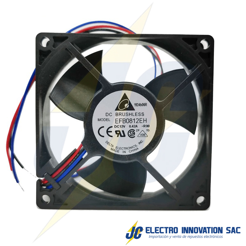VENTILADOR 12VDC 0.42A 3 CABLES 80X80X25MM DELTA EFB0812EH