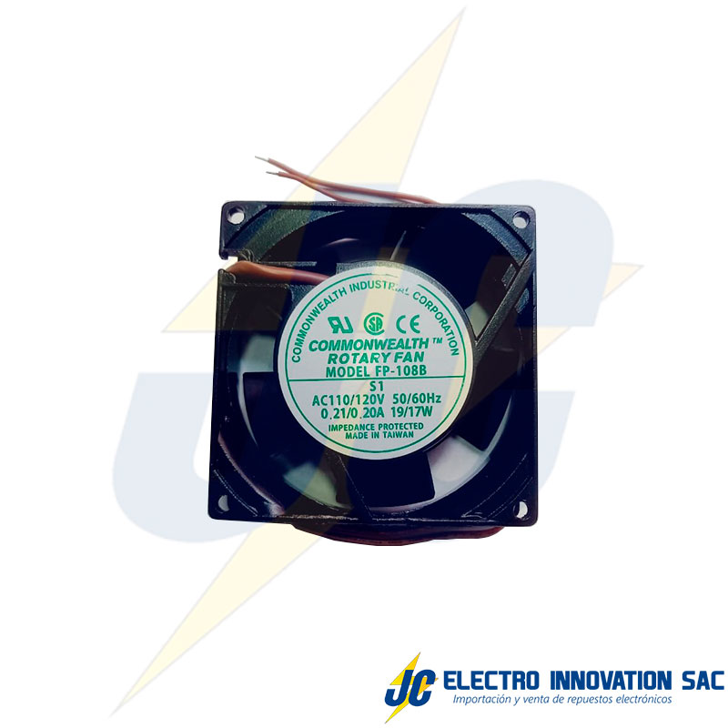 Ventilador FP-108B-110V 0.21A 2 cables 90x90x25mm marca Commonwealth