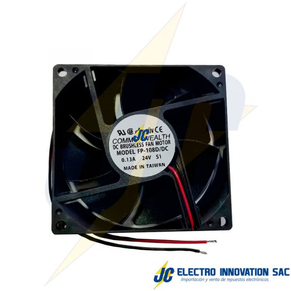 Ventilador FP-108D-24VDC 24V 0.13A 2 cables 80x80x25mm marca Commonwealth